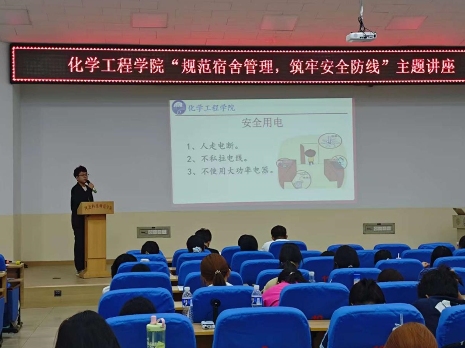 2025年9月16日,化学工程学院在昌黎校区学术报告厅召开了“规范宿舍管理,筑牢安全防线”主题讲座。学院学生工作主管领导、全体辅导员及班主任出席活动,2025级全体新生参加。
